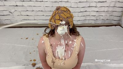 Single mom Sofia received an offer from a customer to go messy extreme and she accepted the challenge. She is handcuffed and has a open ring gag stuffed in her mouth as she takes an onslaught of sweet and savory foods.