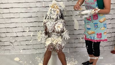 Amber and Stephanie order the special at a fancy restaurant. When they are served the first course, they relized they made a mistake. Both girls are destroyed with pies, cakes and batter slime.