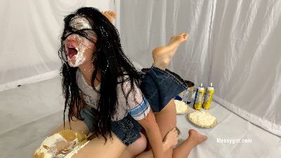Payton does her first every WAM shoot. She starts out all cute and innocent as she is pied for the first time, but she soon becomes aroused and is transformed into a nude and sloppy Messygirl.