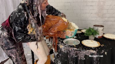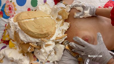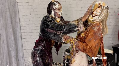 Celeste is exposed and destroyed with pies, marshmallow cream and chocolate syrup.