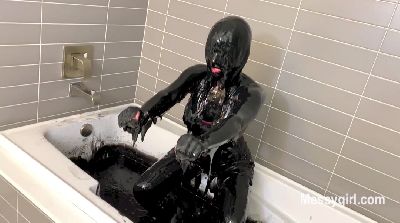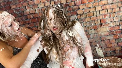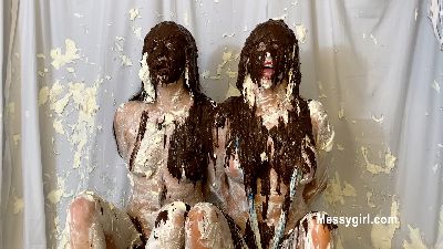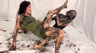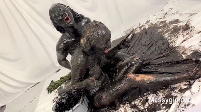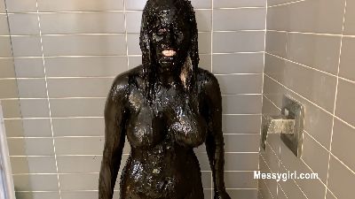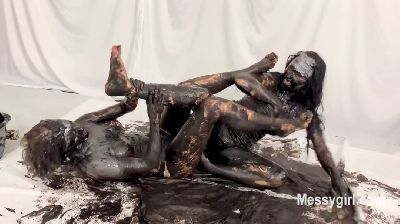 Zoey and Penelope go at it with some extreme black grease wrestling. Both girls are totally unrecognizable by the time they are done.