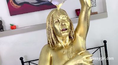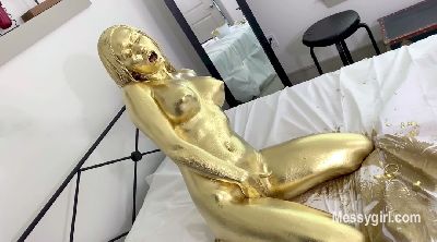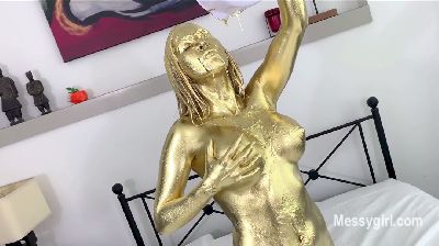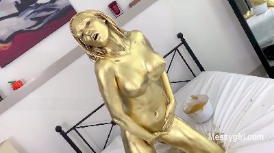 Sexy Zoey does her first gold paint shoot and she doesn't disappoint. She gives a POV performance of herself being transformed into a horny golden statue.