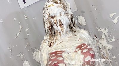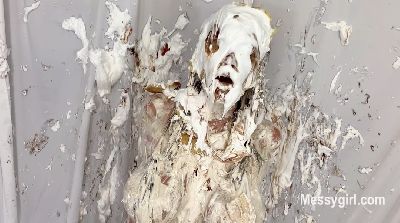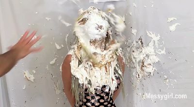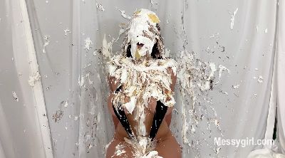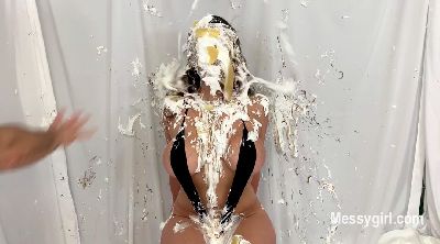 Fan favorite MewMew from the UMD makes her Messygirl debut. So it's only fitting that Amy dishes out the mess on her. Amy is in a sexy leather dress and MewMew is in lingerie and white stockings. Amy doesn't hold back as she pies and slimes MewMew into oblivion.