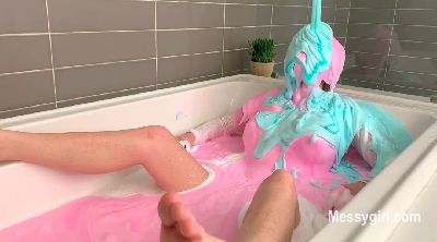 Amber does her first hardcore messy shoot for us. She starts out wearing a slingshot bikini and has her vibrator in hand. She teases the view as she moves the vibrator up and down her leg. She then rubs it on her pussy and you get a full view of it. She then has white slime poured over her head as she continues to rub the vibrator on her wet pussy. Before you know it, she is nude and her pussy is now sloppy wet. She can't help herself as she cums hard as the slime continues. By the time she is done, she is a sloppy and satisfied mess.
