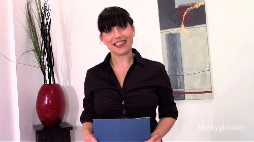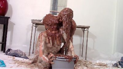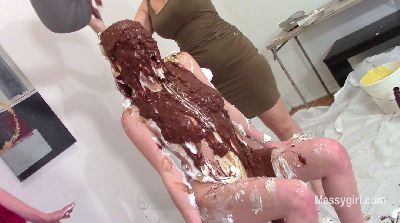 Misty is being interviewed by Amy for a maids job. But Amy finds out Misty lied about her work experiance and will tell the agency that sent her. Misty begs Amy to not tell the agency and that she will do anything because she needs the job. Well, Amy wants to teach Misty a lesson, so she takes her to the basement to have a bit of fun with her. She makes Misty strip nude and then get on the mattress so that she can tie her arms and legs together. Amy then inserts a gag in Misty's mouth. Now comes the messy humiliation. Amy smears peanut butter all over Misty's body including her face and into her mouth with the open mouth gag. Next comes dark honey over her head and this is followed with caramel syrup. Poor Misty is a total mess, but next comes chocolate syrup over her head and body. Amy then tells her to open her mouth and inserts the force feeder. Amy makes Misty swallow a chocolate shake and then scoops up the slop on the bed and feeds it to Misty as well. Amy then tells her roll around in the mess like a pig. Once Misty is done, she crawls away a humiliated mess. The good news is she got the job!