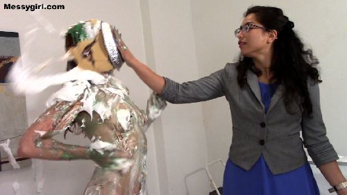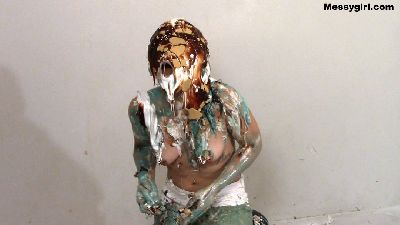Penelope returns after taking a year off to pursue a glamour modeling career. It turns out that she missed being a Messygirl and asked if she could come back. We were more than happy to have her get messy for us again. So we introduced her to our new messy boat to help her get back in the swing of things. She starts out wearing a tight dress and open toe heels. She takes off the shoes and steps into the messy boat. When she is seated and relaxed, she tells Mr MG to let her have it. She is then greeted with pies hard to the face and endless slime pours over the head. She is loving it! She then takes off the dress and rolls around in the slop that has collected in the boat. You get a nice view of her exposed sloppy ass and pussy as she rolls around. She can't get enough of the slop as she pours it over her head continuously. Welcome back Penelope!