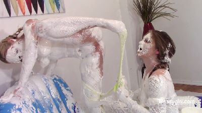 We break out our new toy the "WAM Chair" for Amy and Misty to use as they play in 10 gallons of marshmallow fluff. Both girls are in fishnet outfits and they start to cover each other in the sticky fluff. Soon the outfits are peeled off and that creates a cool fishnet pattern on their bodies. The girls go all out as they dunk their heads in the large containers of fluff. By this time it's hard to tell who is who? The girls then get naughty as they rub their pussies together in the sticky mess. You get the added bonus of the girls washing off in the shower.