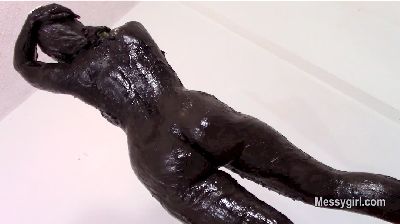 Busty XlcrMoon returns and this time she goes extreme by being covered in black grease and oil. She makes sure to give herself a full thick slathering all over her hot nude body. Next comes the oil and this sets off a very slippery sensation that she enjoys by rubbing it all over body. She then rolls about on a plastic canvas. Very hot stuff!