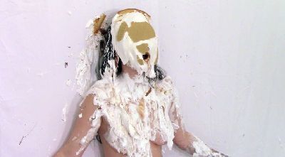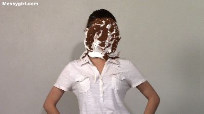 Lucy is doing a survey for the Mother Jones Cream Pie Company. She is all smiles as she begins the survey. When she asks the customer if they like Mother Jones Cream Pies, she is bombared with pies to the face. She just stands there and takes the onslaught. Her tits are exposed and the pies keep coming, followed by a pour of batter and pie sloop mix. The customer makes sure to rub the mess all over Lucy's tits and face. She then becomes turned on and gets on the floor and plays in the slop.
