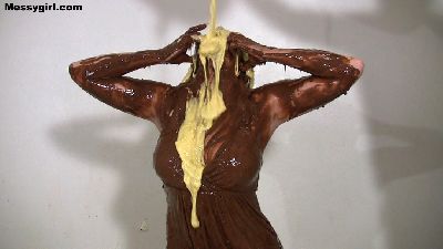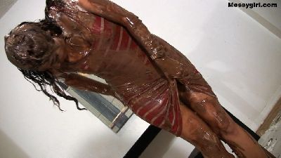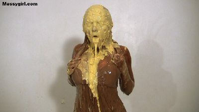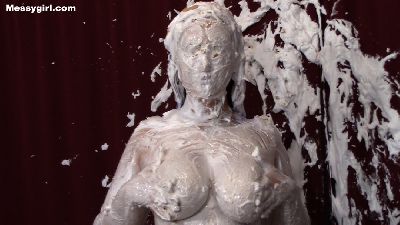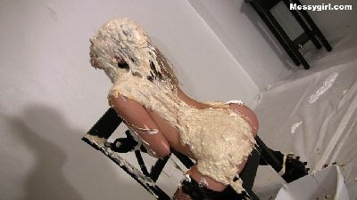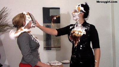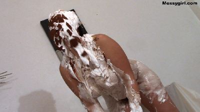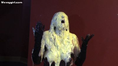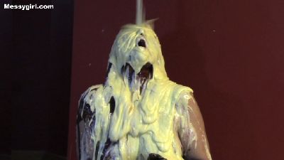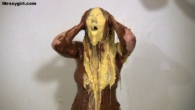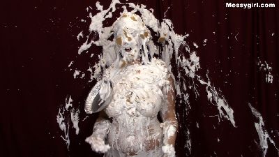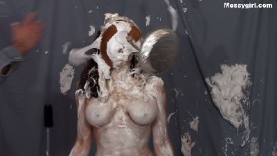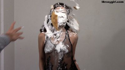 Husband sacrifices his Asian wife, Katy, to Amy, fulfilling his dirty desire for lesbian fun. Amy pies this cutie till she loses count and submerges her beautiful face in buckets of chocolate batter. Amy then pours the batter over Katy`s head and rubs butter cream on her tits and lips. Before you know it, Katy is totally covered head to toe in the mess. Amy finishes her off with a cream slime pour. Katy also gets spanked and has her hair pulled, making her an official MessyGirl.