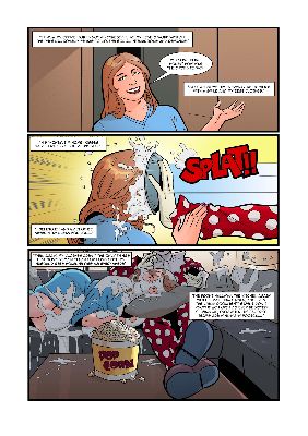 ir head reporter Amy Sinclair is back and this time she is reporting from a bakers strike. As she does her report, she mentions that she is siding with management. This is a huge mistake, because she is then on the receiving of an onslaught of pies and total messy humiliation.