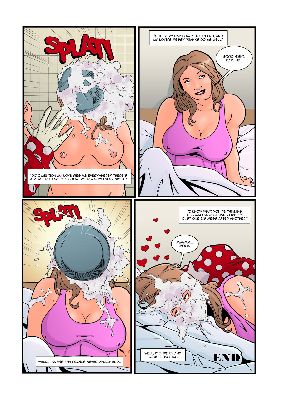 It's "The Auntie Emma's Playhouse Show" starring Emma and co starring Bobo the Bear. Emma welcomes the viewers and tells them the show is brought to them by the letter P and number 10. She tells Bobo she wants him to help her by showing what begins with the letter P. He shows a pencil and then ten pencils. That is followed with ten sheets of paper. Then he shows a pie, but Emma wants to know if he has ten pies. That turns out to be the wrong thing to ask, because Bobo proceeds to slam 10 pies hard into Emma's face. He even adds an 11th pie for good measure. Emma is pissed and fires Bobo on the spot. This makes Bobo very mad. So he strips Emma's top off and pours green slime over her head. Bobo even grabs her tits a few times during the assault. The scene cuts abruptly with a technical difficulties notice. When the cameras are back on, we see Emma trying to clean off, but soon discovers that she is becoming aroused. She then preforms for the camera with her new show "Auntie Emma After Dark".