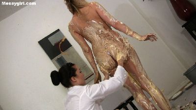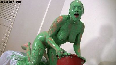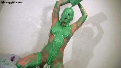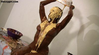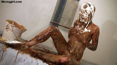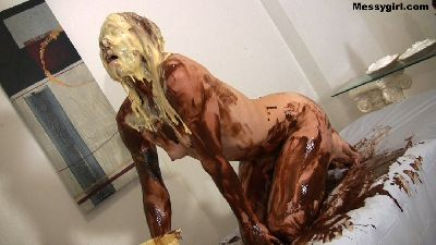 Amy is well dressed and wearing glasses as she wants to prove that even classy girls can get very raunchy. She has a bucket sloppy oatmeal and a bucket of chocolate to do the damage. She crawls to the sloppy oatmeal and dunks her head over and over again in it. Her glasses are still on when she does this. She then rubs the slop all over her dress and body. This is followed with head dunks in the chocolate. It mixes well with the oatmeal as she rubs it all over herself. She then strips nude and plays in the slop on the floor. After one last bucket pour of slop over her head, she plays with her pussy until she cums.