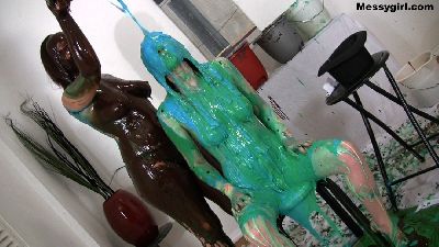 Jacy and Penelope play the game Slime, Strip or Cash. The object of the game is to pull out a piece of paper that reads, slime, strip or cash. If they pull out cash, that girl wins. If they pull out strip or slime, well you know what happens next. Both girls start out in summer tops and jeans, but by the end of the game, they are nude and covered head to toe in multi colors of slime.
