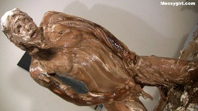 Sexy redhead Emma is nude as she covers herself head to toe in sticky clay. She makes sure you get a nice view of her pussy and ass as she slathers herself. By the time she is done, she looks like a sexy mud creature.