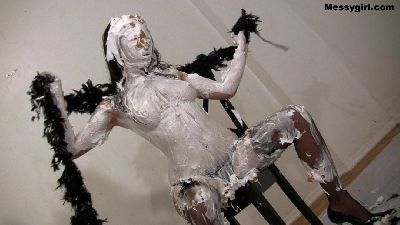 Penelope give Emma her Messygirl initiation. Emma is told to get on her knees as she is destroyed with pies, batter and custard. She also gets her ass spanked with a cat o'nine tails whip.