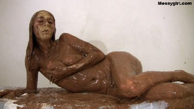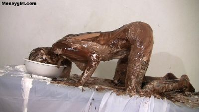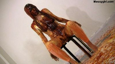 Cute Justine covers herself head to toe in 5 gallons of peanut butter and tops it off with a gallon of treacle.