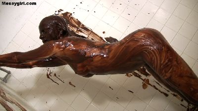 Justine shows how much she loves chocolate, by covering her hot little body head to toe in it.