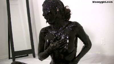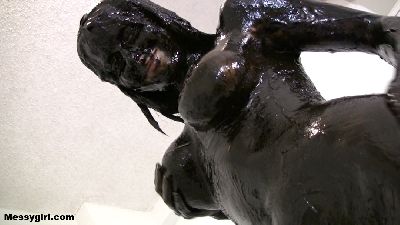 Hannah Perez is covered head to toe in grease and oil. She ends up looking like a sexy grease creature.