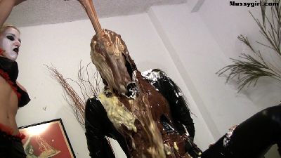 Kordelia shows how much she loves chocolate. This includes being covered head to toe and having the force feeder attached to her mouth and taking the chocolate down her gullet. Very humiliating and erotic!