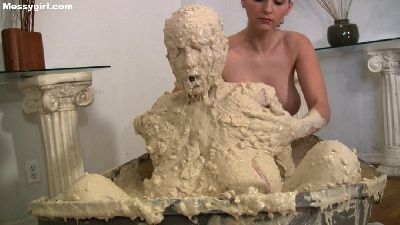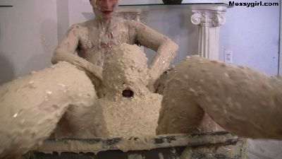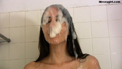 Lane is nude as she is covered in transparent think slime. She rubs it all over her sexy body and even dunks her face in a bowl of the stuff.