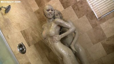 Christina and very busty Russian Vassanta take a dip in the glop bath.