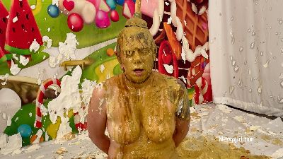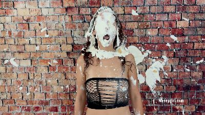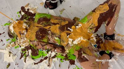 This is by far Dakota's naughtiest solo messygirl shoot. She is pied while twerking and then slimed. She then takes out her vibrator as she is pied and slimed again.