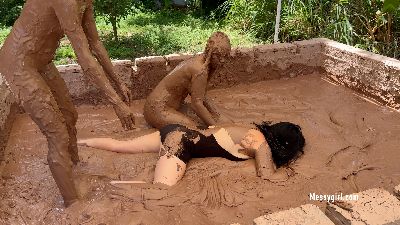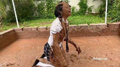 Young schoolgirl Celeste falls into a mud pool that is mixed with an aphrodisiac. She because very aroused as she wallows around and covers herself head to toe.
