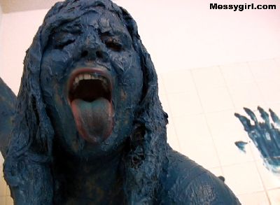 Get up-close and personal with Vicky as she covers herself head to toe in blue butter cream and chocolate syrup.