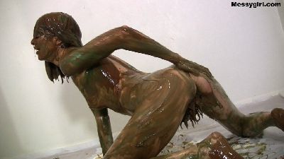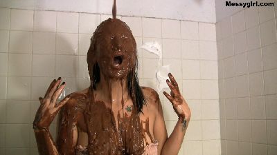 Sexy Hannah Perez starts out by taking a nice warm shower. Then the fun begins when sloppy thick mud is poured over her head.