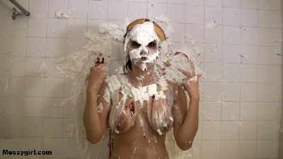 Fetish model Jordana Leigh does her first shoot for us and she doesn't disappoint. She is attacked in the shower with pies and chocolate, but then becomes aroused and masturbates!