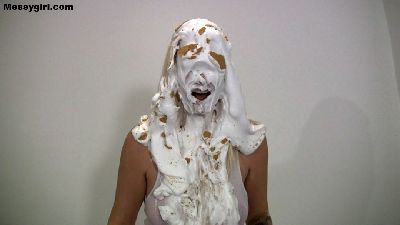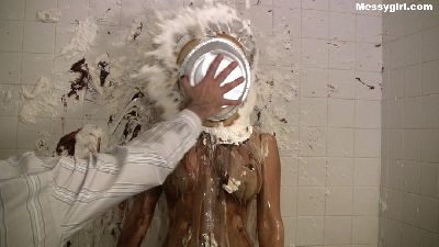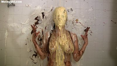Video of Vicky covered in butter cream and chocolate