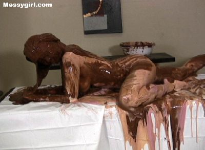 Video of Fae getting coating in chocolate