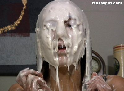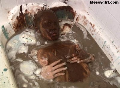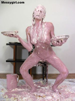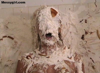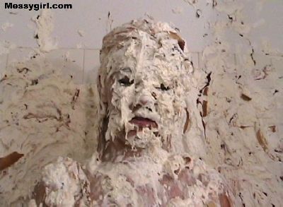 Debbie's relaxing bath gets very messy. Great coverage with pies, chocolate batter and slime.