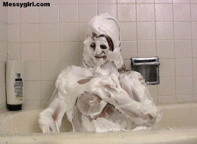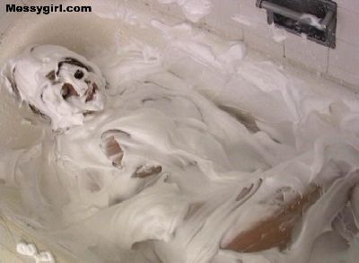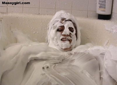Busty Angela takes a good old fashion shaving cream bath. Total coverage!