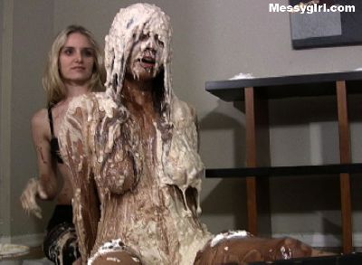 Cute Debbie is transformed into a sexy gooey glop girls. She is coated in a sticky flour and water mix.