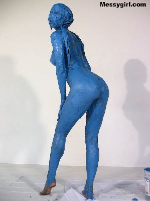 Sexy Lane covers herself in blue butter cream and then takes a shower.