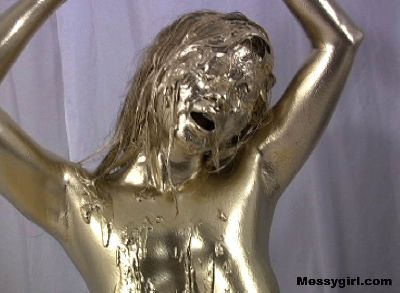 Sexy Asian babe Vivian is covered head to toe in gold paint.