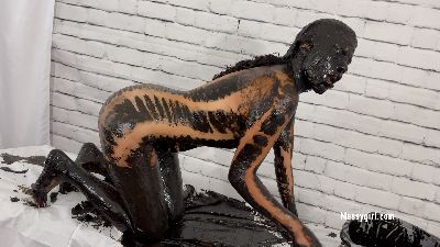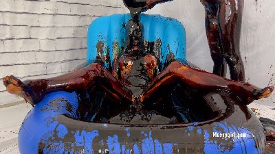 Sexy Sofia and Zoey find creative ways to cover their nude bodies in sticky black treacle.